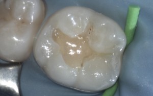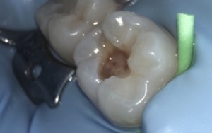 These pictures are a case example of a cosmetic tooth-coloured filling done here at Cornerstone Dental.